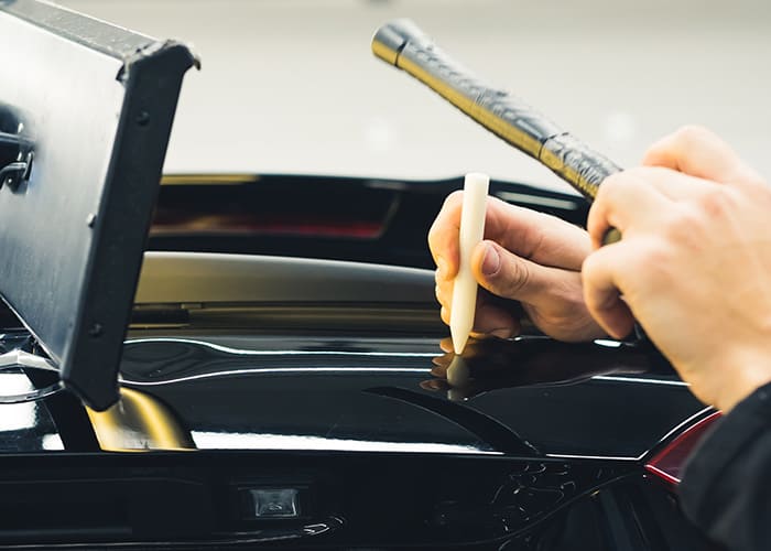 塗装のいらない小さなヘコミ修理にはデントリペアが最適です。専用ツールで塗装を傷つけずにヘコミを修復し、元の美しい状態に戻します。短時間で完了するため、修理費用も抑えられます。小さなダメージでもお気軽にご相談ください。プロの技術で迅速かつ丁寧に対応します。